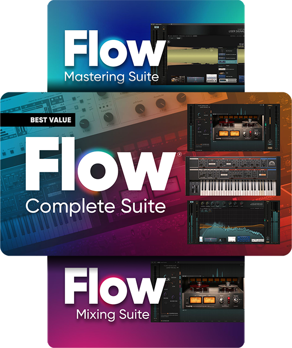 Flow® Studio comes equipped with Flow Studio Suite: a collection of 100+ signal chains running in the Flow Mixing Suite plug-in to make vocals, guitars, synths, drums, and more, sound better than ever, and help ignite new ideas and paths for your music. Built by top sound designers and music producers, these chains – called Flows – mean the twist of any macro knob immediately transforms the sound, taking a dry recording to a draft mix in seconds.