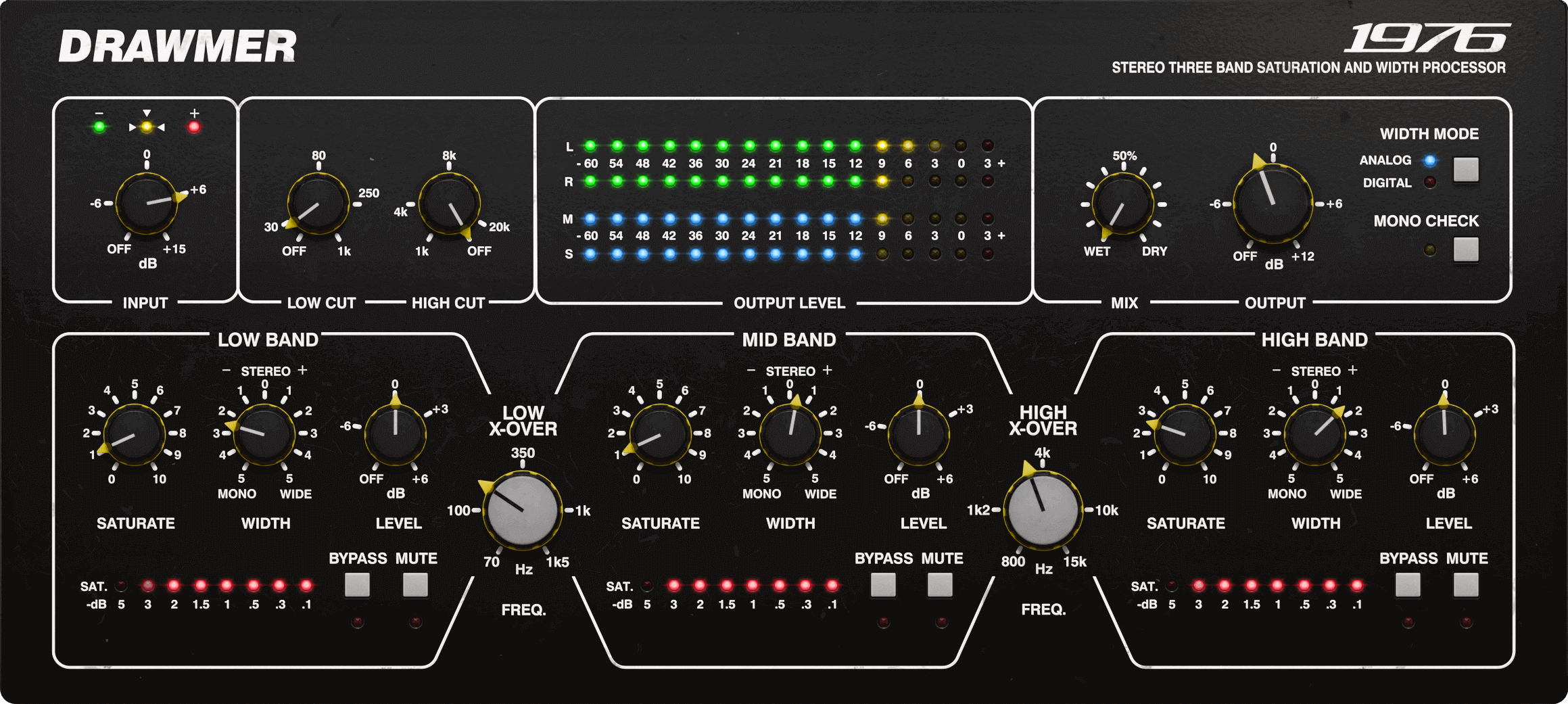 • A precise model of the classic Drawmer 1976 Stereo Three Band Saturation and Width Processor